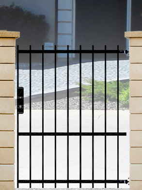 Strapabíró kerítéseket kínálunk: 12x12 mm-es tömör pálcákkal dolgozunk, melyeket 5x30 mm-es laposvasak közé helyezünk; a csúcsdíszeket hegesztjük.