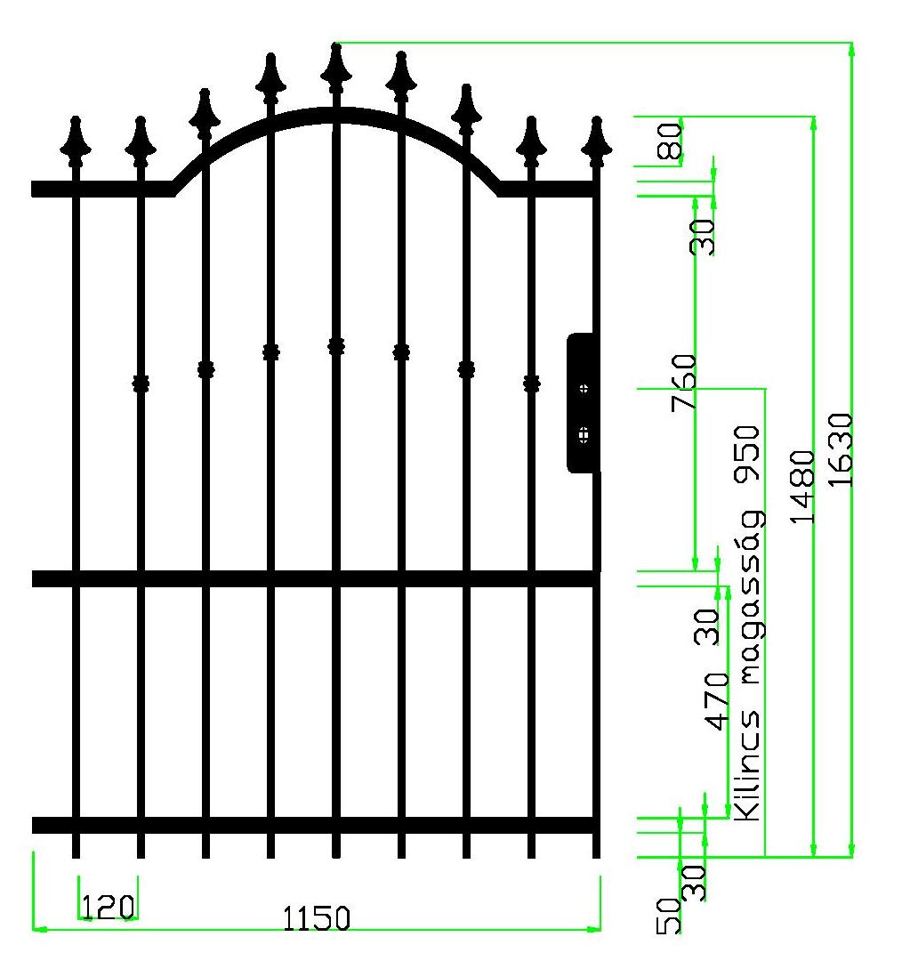 Strapabíró kerítéseket kínálunk: 12x12 mm-es tömör pálcákkal dolgozunk, melyeket 5x30 mm-es laposvasak közé helyezünk; a csúcsdíszeket hegesztjük.