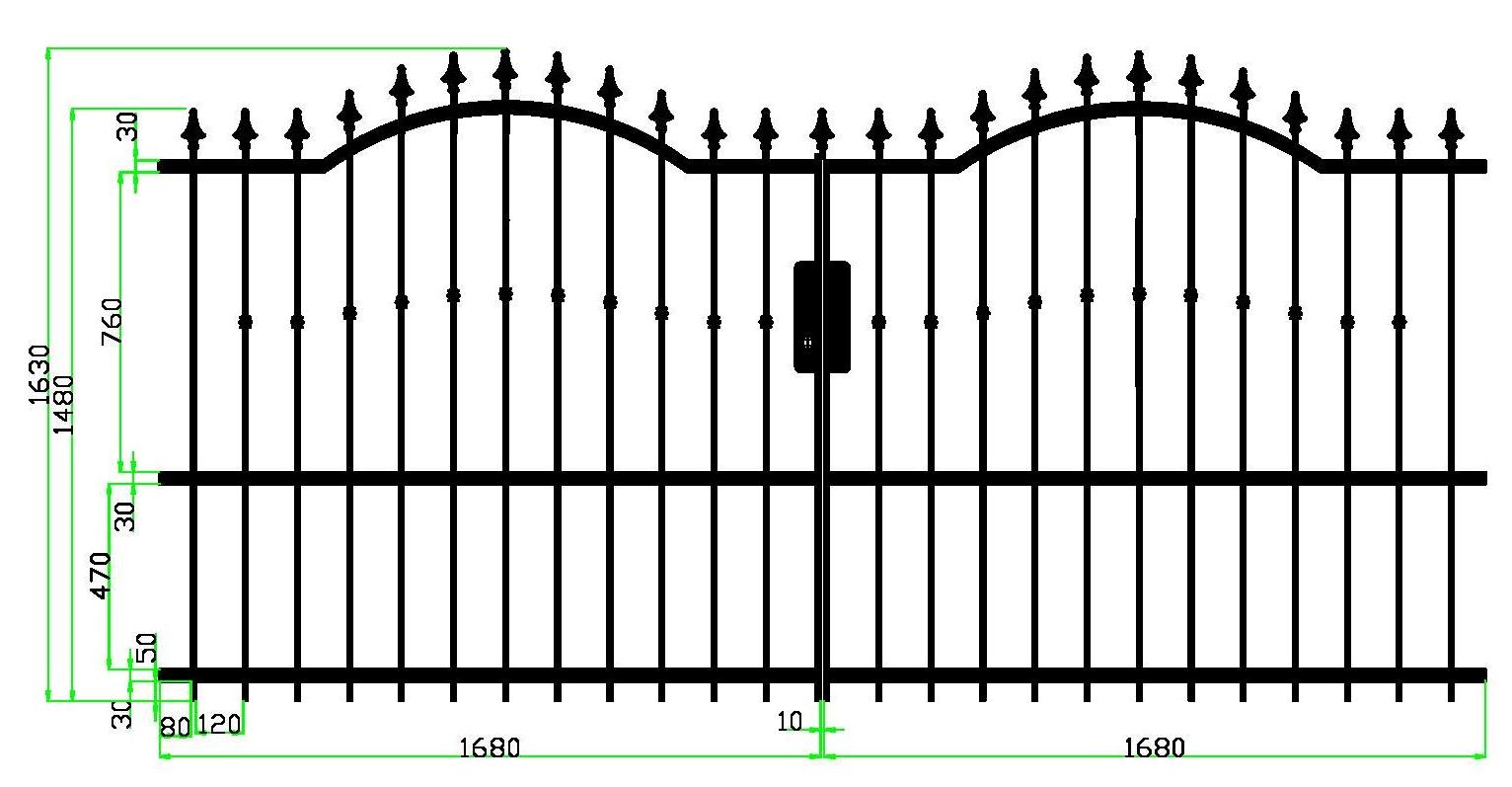 Klasszikus vonalvezetésű kerítés motívum, melyet a középen elhelyezkedő pálcadíszek és csúcsdíszek harmóniája díszít. Méretre alakítható megoldás, akár meglévő lábazathoz is szerelhető Kerítés elemeink univerzálisak, azaz fém-, illetve betonoszlophoz is könnyen illeszthető megoldást jelentenek. Egyenes és íves kivitelben Adony motívum Kovácsolt jellegű fém méretre alakítható kerítéselem. Időtálló, biztonságos, 12*12 mm –es tömör anyagból készült