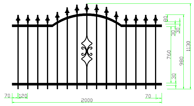 Strapabíró kerítéseket kínálunk: 12x12 mm-es tömör pálcákkal dolgozunk, melyeket 5x30 mm-es laposvasak közé helyezünk; a csúcsdíszeket hegesztjük.