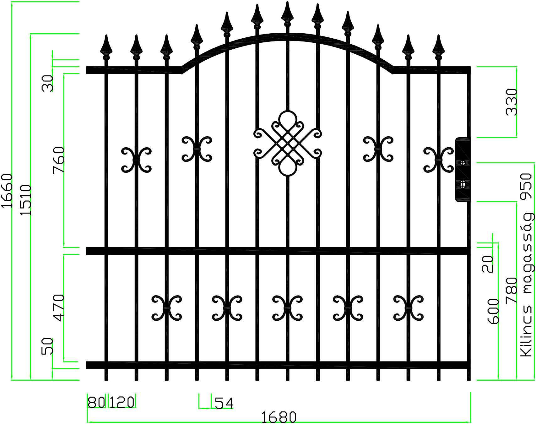 Strapabíró kerítéseket kínálunk: 12x12 mm-es tömör pálcákkal dolgozunk, melyeket 5x30 mm-es laposvasak közé helyezünk; a csúcsdíszeket hegesztjük.