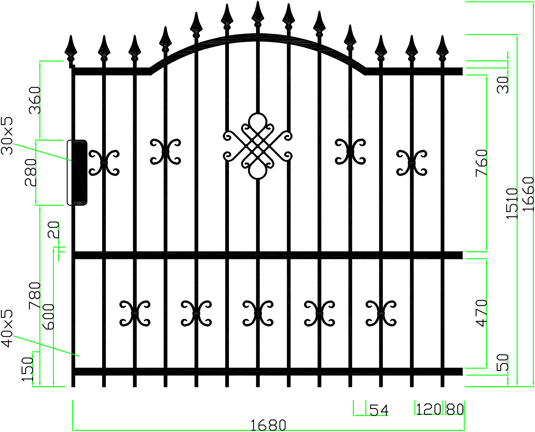 Strapabíró kerítéseket kínálunk: 12x12 mm-es tömör pálcákkal dolgozunk, melyeket 5x30 mm-es laposvasak közé helyezünk; a csúcsdíszeket hegesztjük.