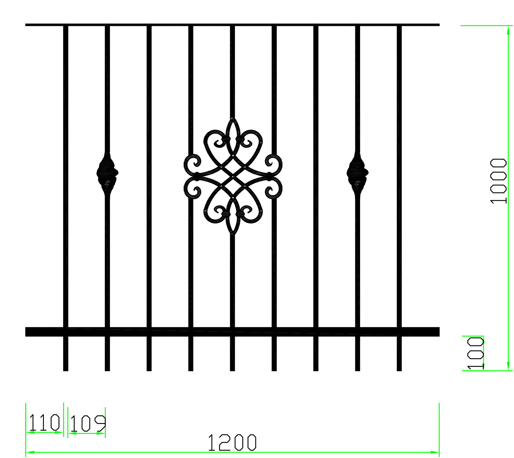 Strapabíró kerítéseket kínálunk: 12x12 mm-es tömör pálcákkal dolgozunk, melyeket 5x30 mm-es laposvasak közé helyezünk; a csúcsdíszeket hegesztjük.
