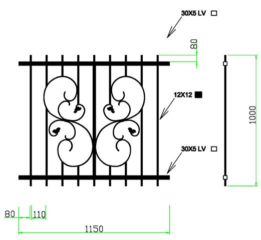 Strapabíró kerítéseket kínálunk: 12x12 mm-es tömör pálcákkal dolgozunk, melyeket 5x30 mm-es laposvasak közé helyezünk; a csúcsdíszeket hegesztjük.