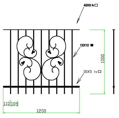 Strapabíró kerítéseket kínálunk: 12x12 mm-es tömör pálcákkal dolgozunk, melyeket 5x30 mm-es laposvasak közé helyezünk; a csúcsdíszeket hegesztjük.