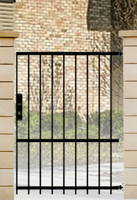 Strapabíró kerítéseket kínálunk: 12x12 mm-es zártszelvény pálcákkal dolgozunk, melyeket 5x30 mm-es laposvasak közé helyezünk; a csúcsdíszeket hegesztjük.