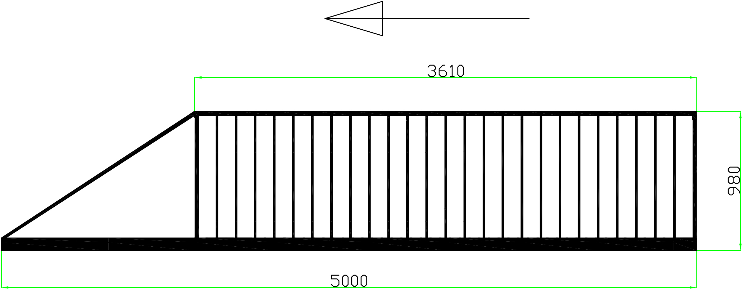 Magasság: 1000 mm Szélesség: 3610 mm Súly: 98.000 Kg